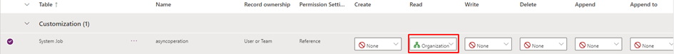 Bước 5: Tìm kiếm asyncoperation “System Job” thay đổi Permission từ Read thành Organization