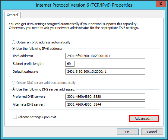Chọn OK ở cửa sổ Internet Protocol Version 6 (TCP/IPv6) Properties.