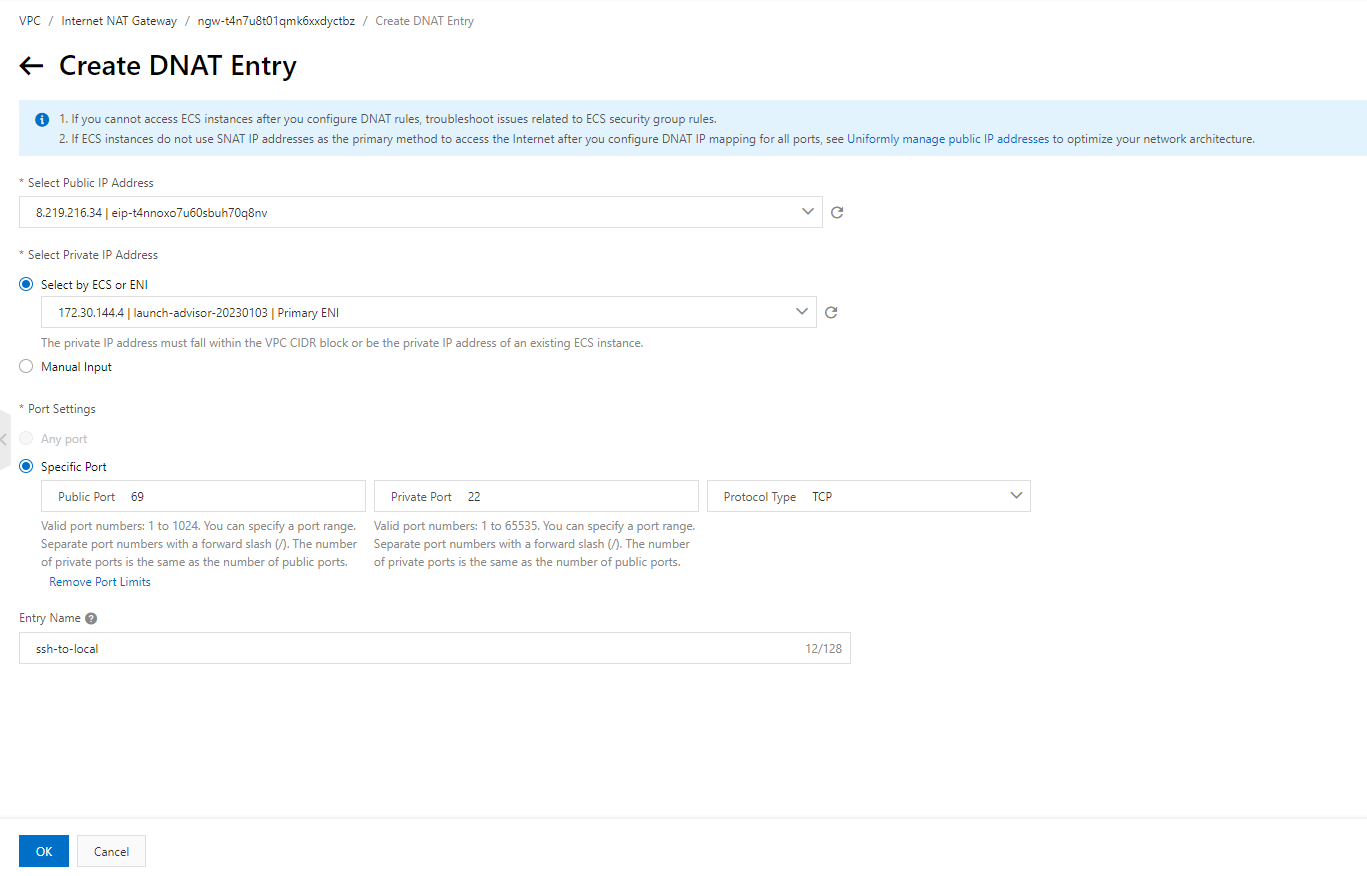 Cấu Hình DNAT Trên Internet NAT Gateway Cho ECS Instance