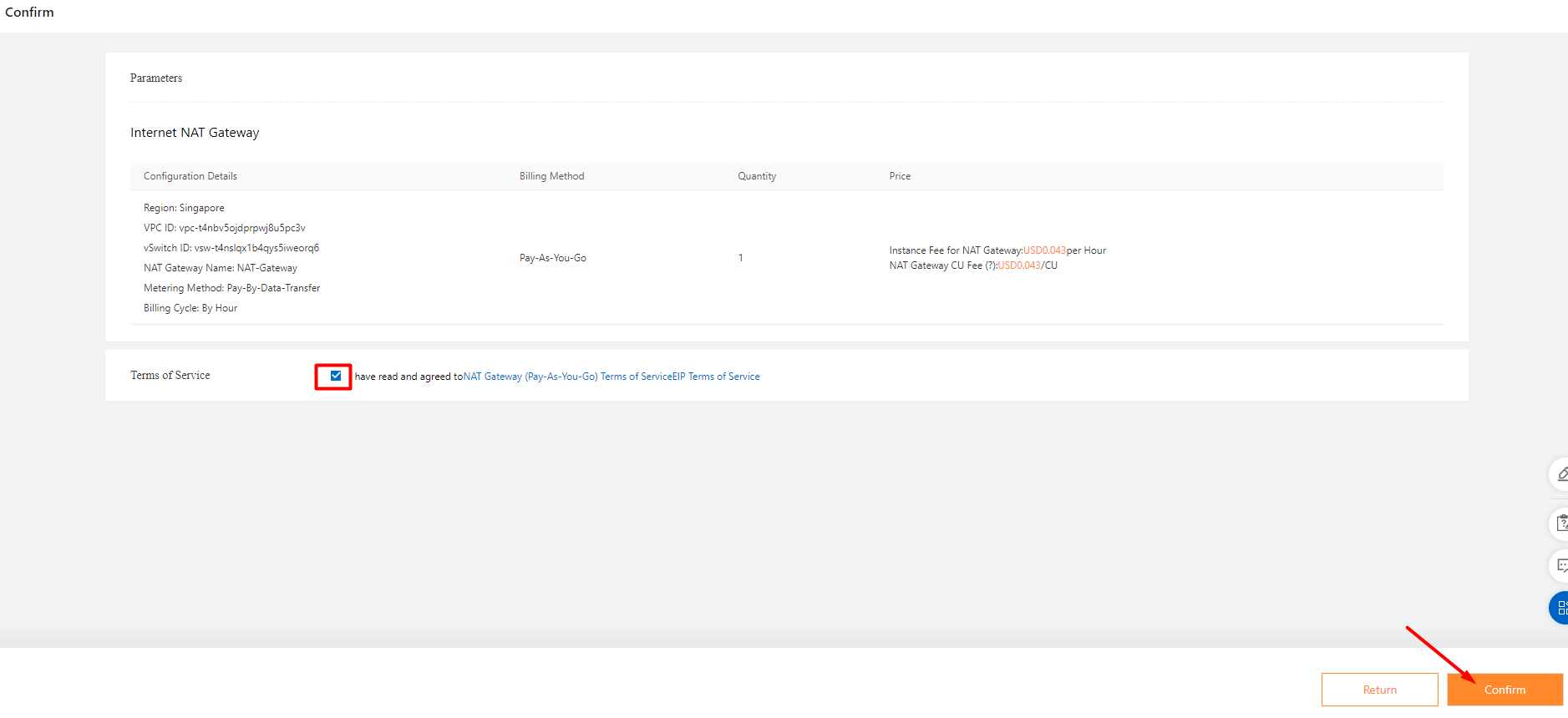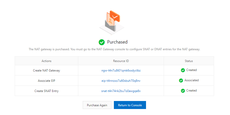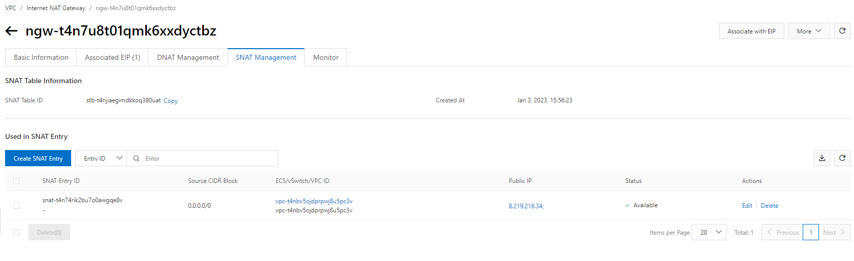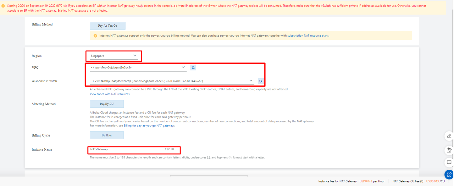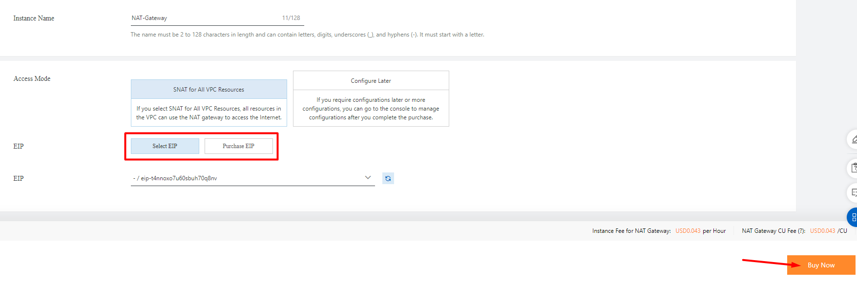 Hệ thống sẽ tự tạo 1 SNAT public ra Internet với EIP và VPC đã chọn ở trên.