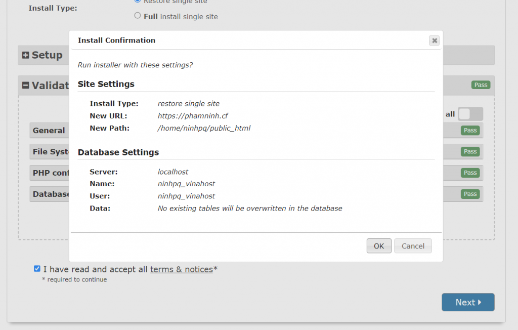 Lưu ý: Bạn cần trỏ chính xác domain về IP máy chủ hosting/vps thì mới restore được nhé!