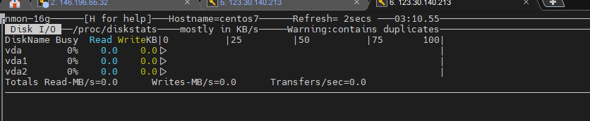 Như hình là đang thống kê tốc độ của card mạng eth0. Nhấn d để giám sát đồ thị I/O đĩa linux.