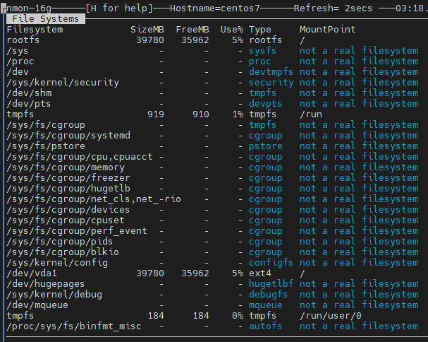 Để xem dung lượng trong server như dung lượng đã dùng, đang trống, loại và điểm gắn tệp: