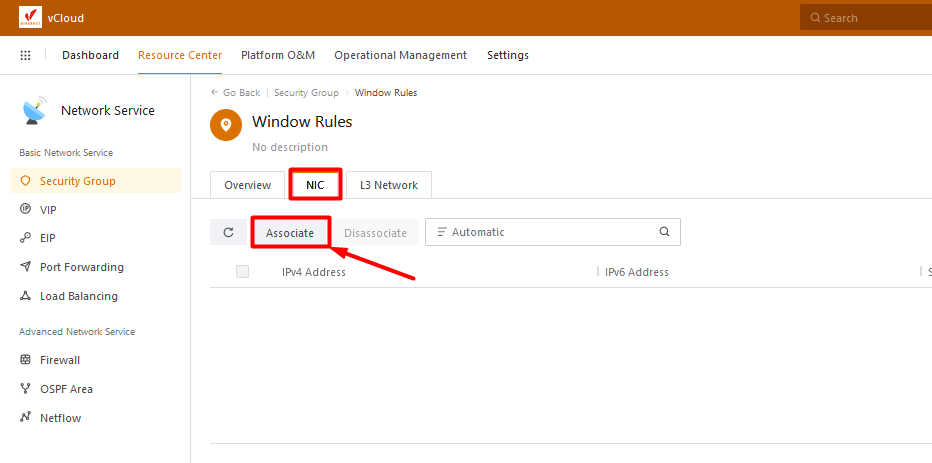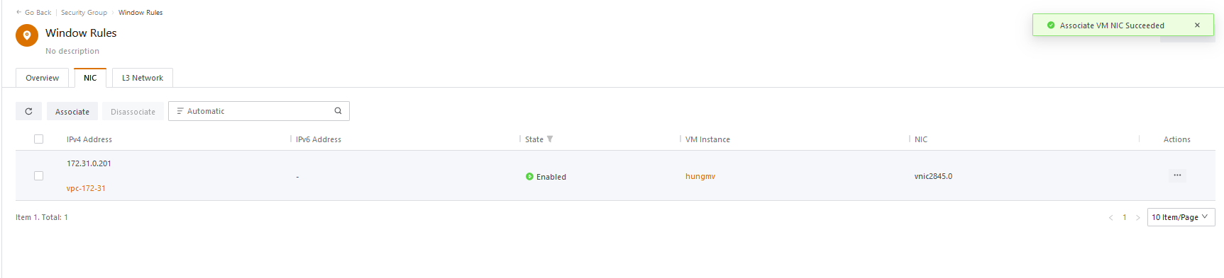 - Chuyển qua Tab NIC > Chọn Associate (tương tự chọn Disassociate để gỡ NIC)