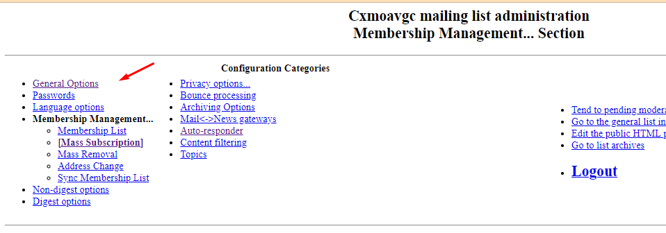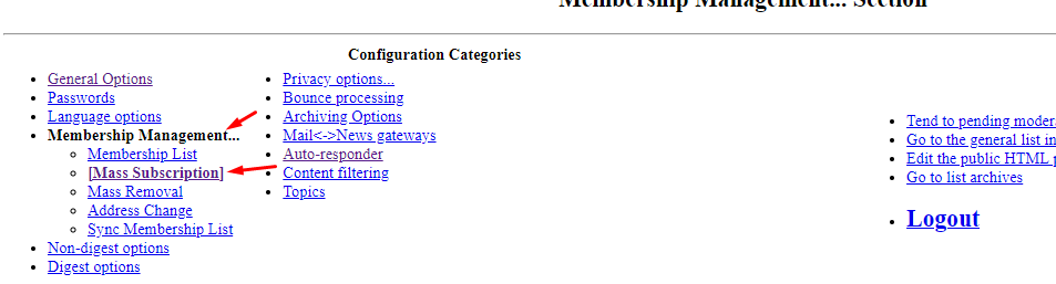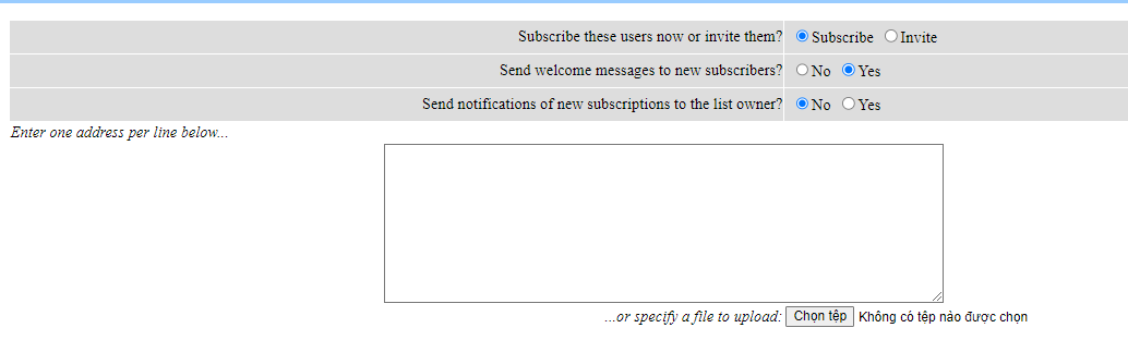 - Membership Management…Section cho phép quản lý user tham gia Mailing List, gửi lời mời hay chấn nhận yêu cầu tham gia của user.