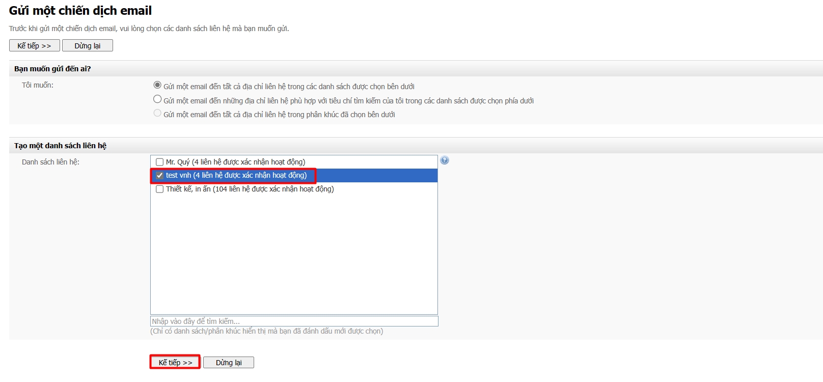 Bước 2: Chọn danh sách liên hệ#