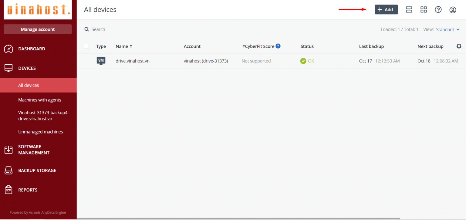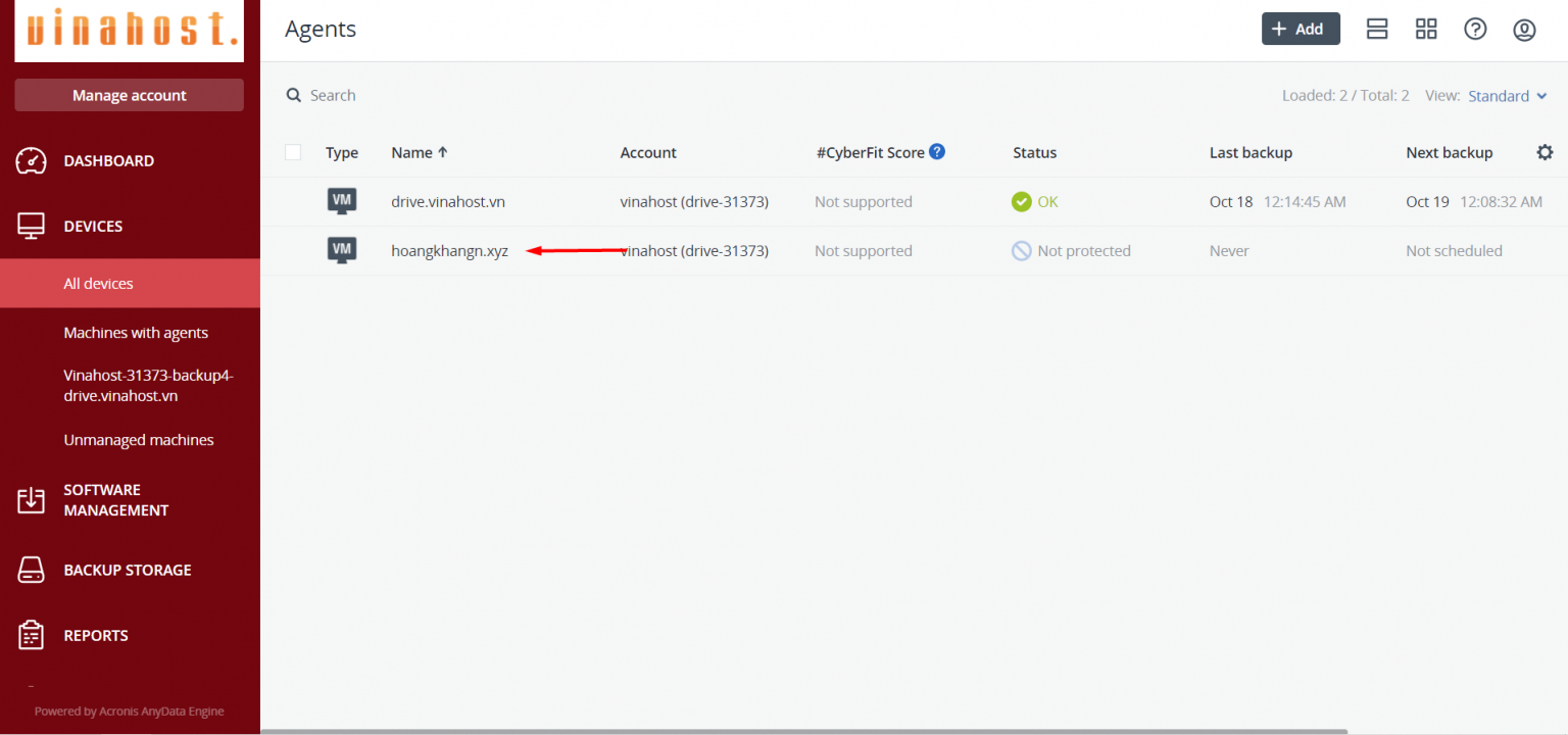 Bước 6: Tiến hành add vào trang cloudbackup vinahost: