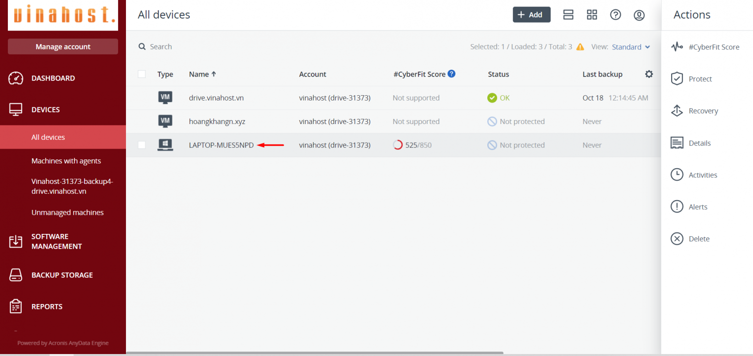 - Để backup toàn bộ máy, bạn chọn một hoặc nhiều máy cần backup, ở ví dụ của mình sẽ là “LAPTOP-MUES5NPD”.
