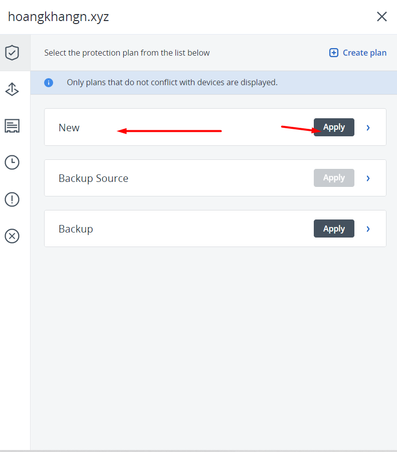Sau khi hoàn tất thêm máy chủ của mình vào trang cloudbackup, chúng ta tiếp tục tiến hành tạo các backup plan cho máy của mình. Về cơ bản thì việc tạo các plans giữa Windows và Linux sẽ hoàn toàn giống hệt nhau.