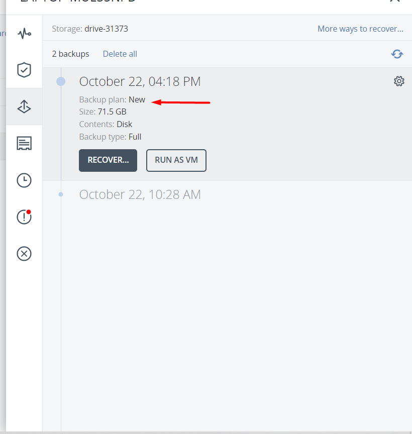Ta sẽ thấy có các bản backup đã tạo từ trước, ta chú ý mục “Backup plan” là tên bản backup của mình đã đặt từ trước mà chọn cho đúng để khôi phục lại dữ liệu của mình: