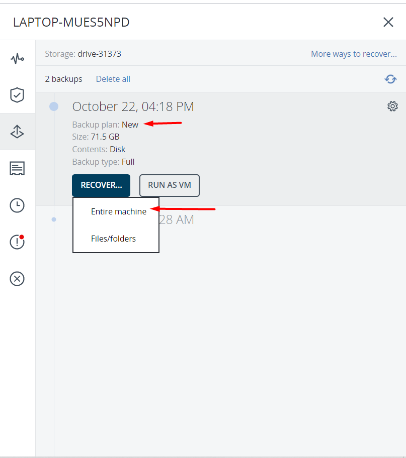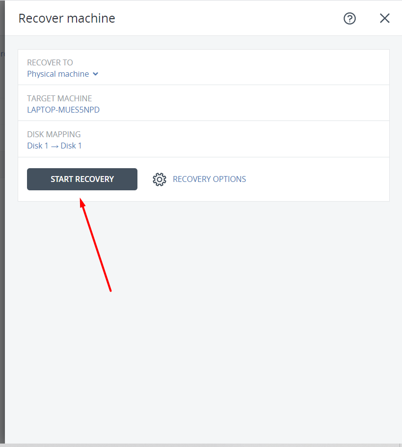 Sau đó ta bấm “RECOVER” chọn “Entire machine”: