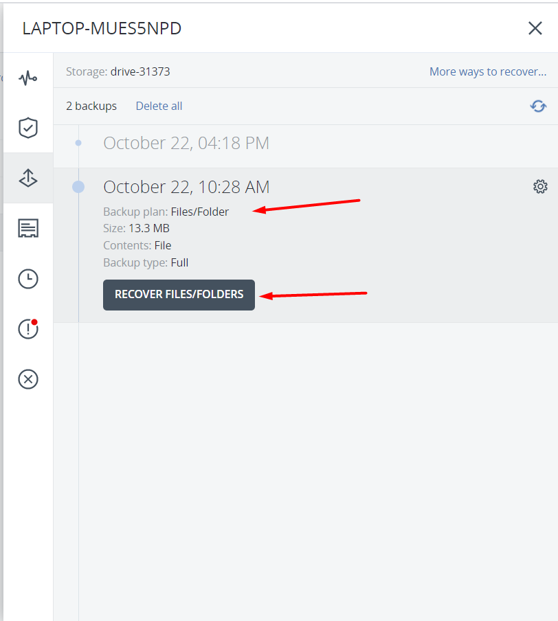 Các bước làm cũng tương tự như ở trên, ở đây mình có tạo một plan “Files/ Folder” cho nên mình sẽ chọn plan này hoặc các bạn có thể khôi phục files folders của mình từ plan backup toàn bộ máy của mình: