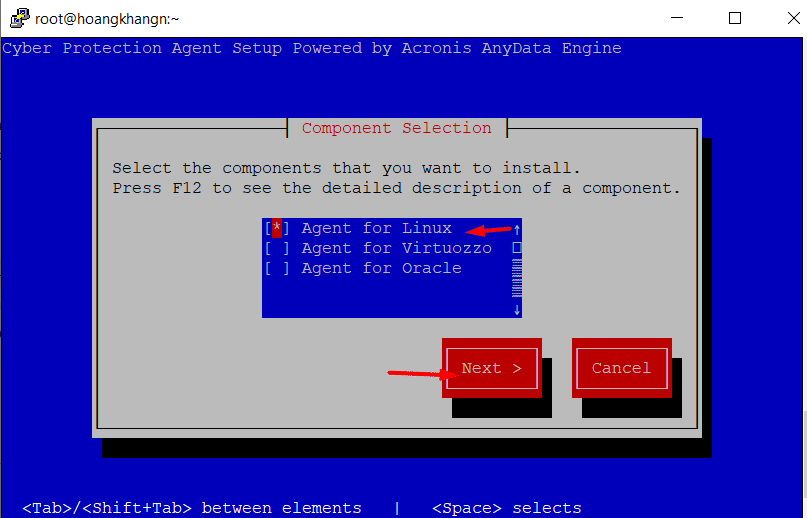 Bước 11: Tích chọn “Agent for Linux” và bấm “Next”: