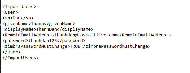 Import Người Dùng Vào Zimbra Thông Qua Giao Diện Zimbra Và File XML