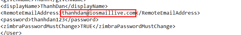 Chỉ nên quan tâm vào 3 block Display name, RemoteEmailAddress và Password