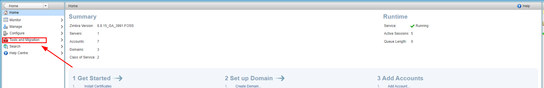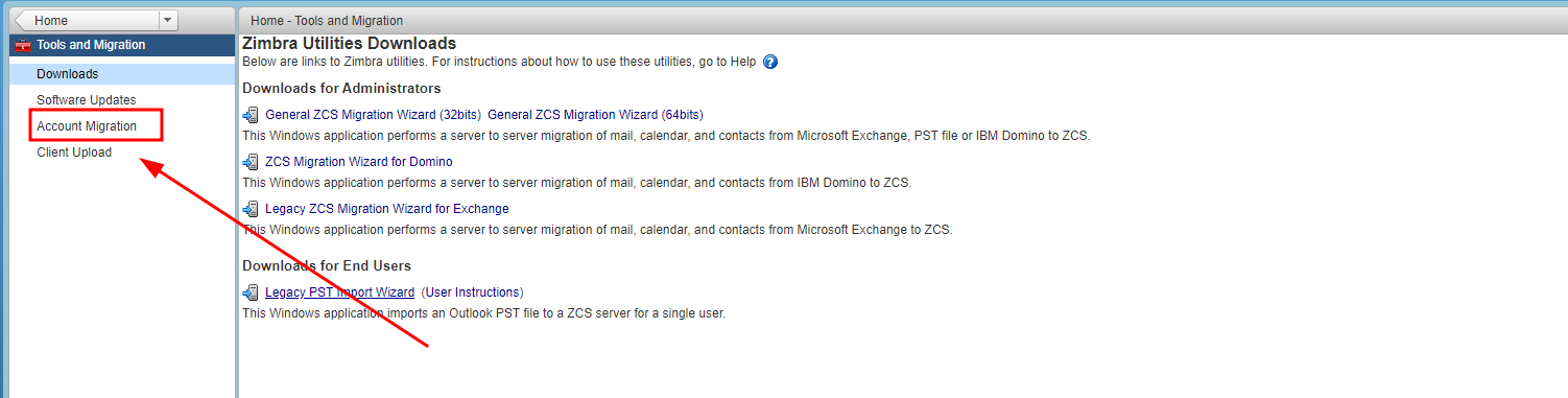 Bước 2: Import thông qua giao diện ZimbrAdmin