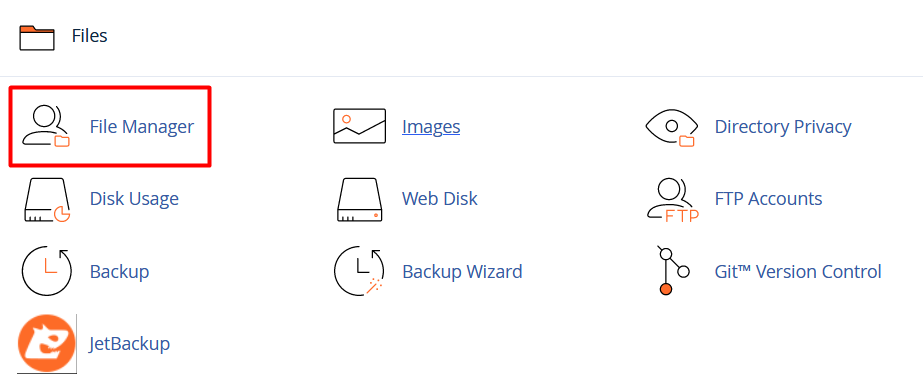 Tìm trên giao diện cPanel hoặc nhập vào ô tìm kiếm và chọn File Manager.