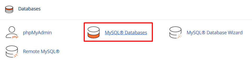 Tìm trên giao diện cPanel hoặc nhập vào ô tìm kiếm và chọn MySQL Databases.