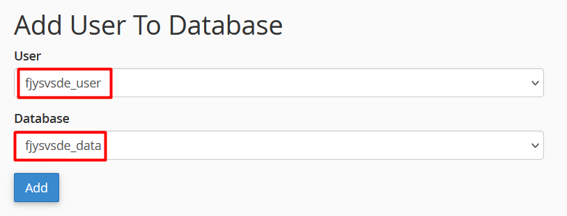 Cũng trong giao diện MySQL Databases, kéo xuống phía dưới để tạo user tại phần Add New User.