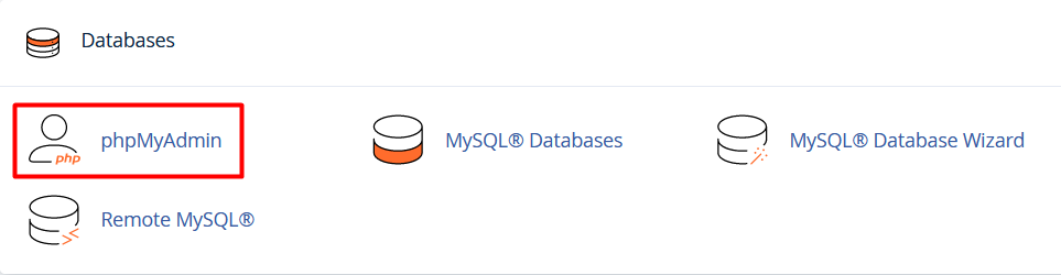 Tìm trên giao diện cPanel hoặc nhập vào ô tìm kiếm và chọn phpMyAdmin.