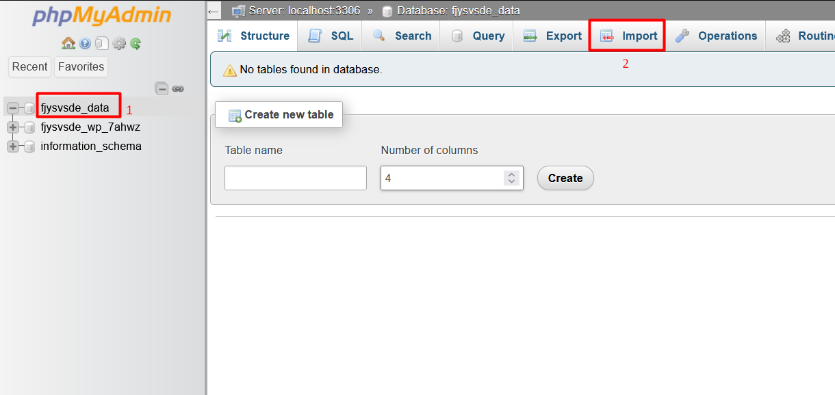 cPanel sẽ chuyển hướng đến giao diện của phpMyAdmin để nhập dữ liệu database. Chọn đúng database cần nhập dữ liệu (database mà bạn đã tạo ở bước 1), sau đó chọn Import.