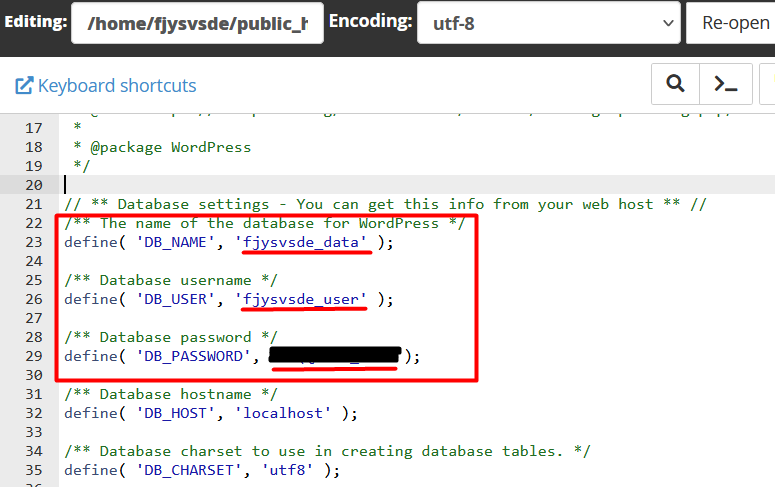 Điểm đáng lưu ý là các giá trị trong tệp wp-config.php phải được cấu hình đúng để website có thể hoạt động.