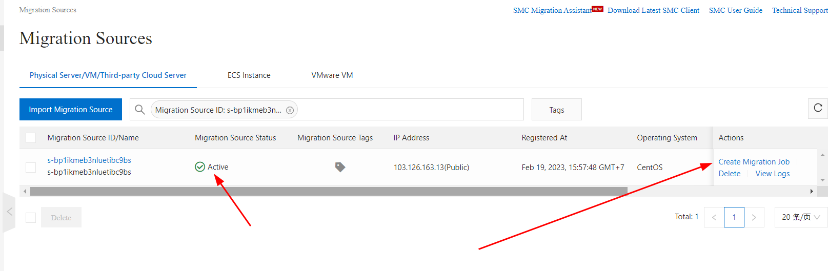Khi quá trình Import thành công sẽ thông báo active, click vào Create Migration Job để bắt đầu Migrate.