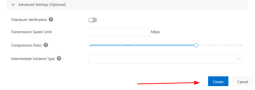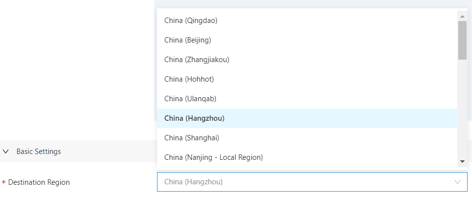 Destination Region có thể chọn vùng bạn muốn migrate đến, mặc định là China.