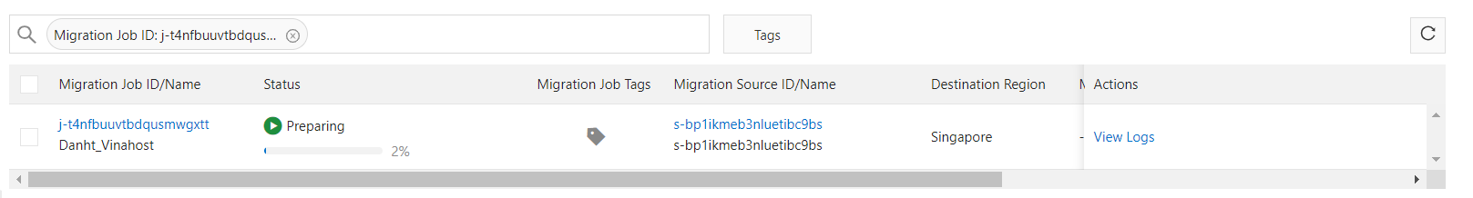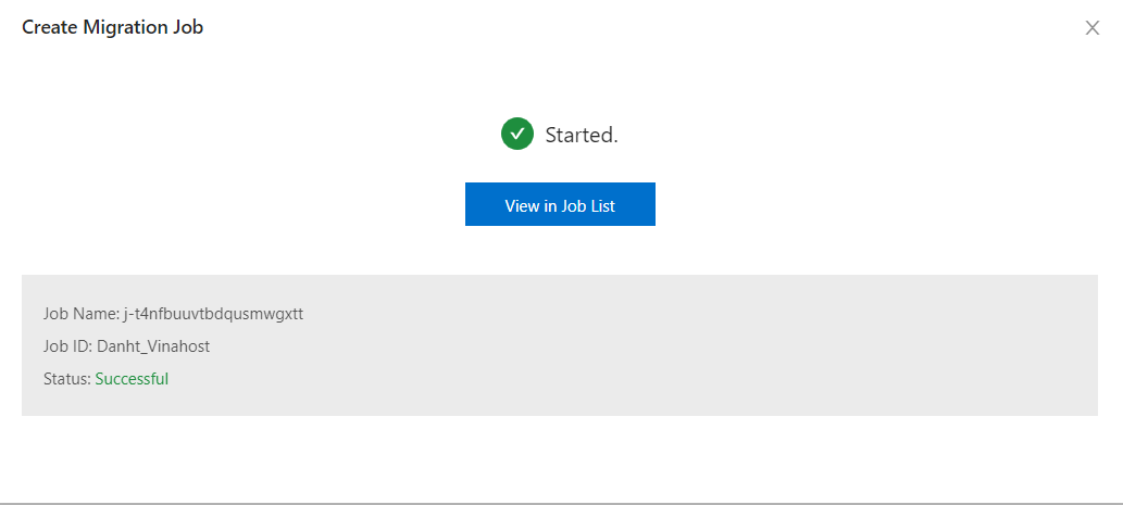 Có thể chọn View in Job list để xem quá trình Migrate, hoặc có thể vào phần migrate job bên thanh điều khiển bên trái.