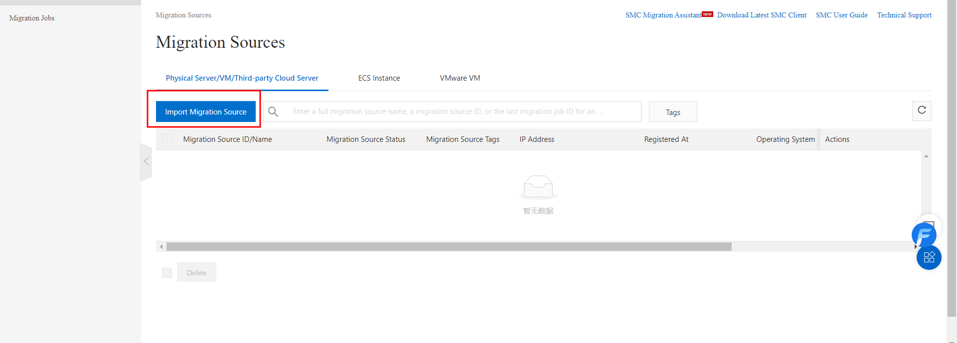 - Physical Server/VM/ECS Instance: có thể import từ server vật lý, VM hoặc từ một instance.