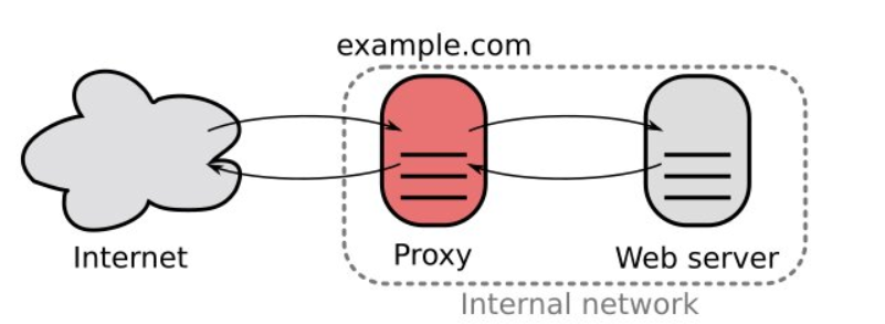 Trong mô hình web ta có server và client. Với Reverse Proxy, nó đóng vai trò là server nhận request từ client sau đó nó đóng vai trò là 1 client để gửi request đến server phù hợp. Nhận trả lời từ server và gửi phản hồi đó đó đến client ban đầu như thể nó là webserver.