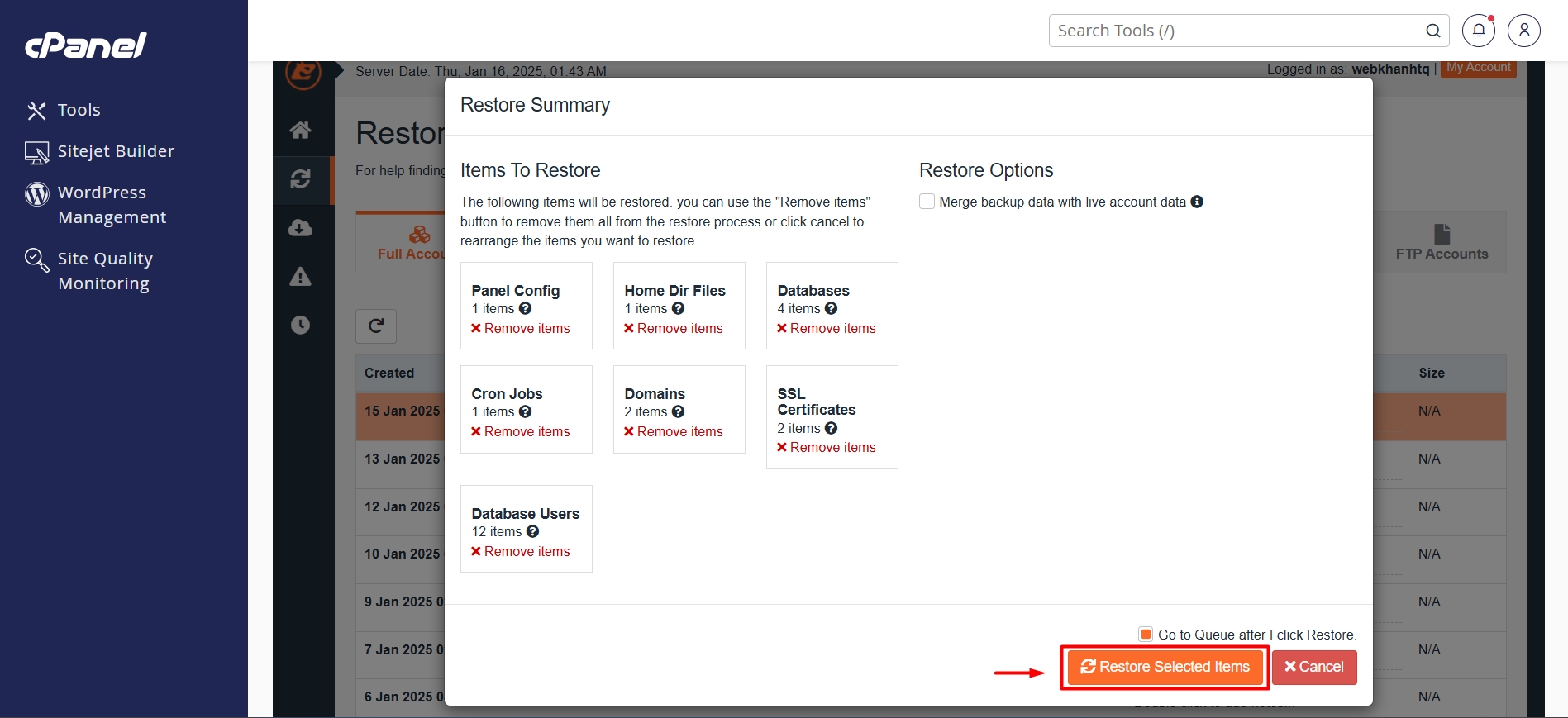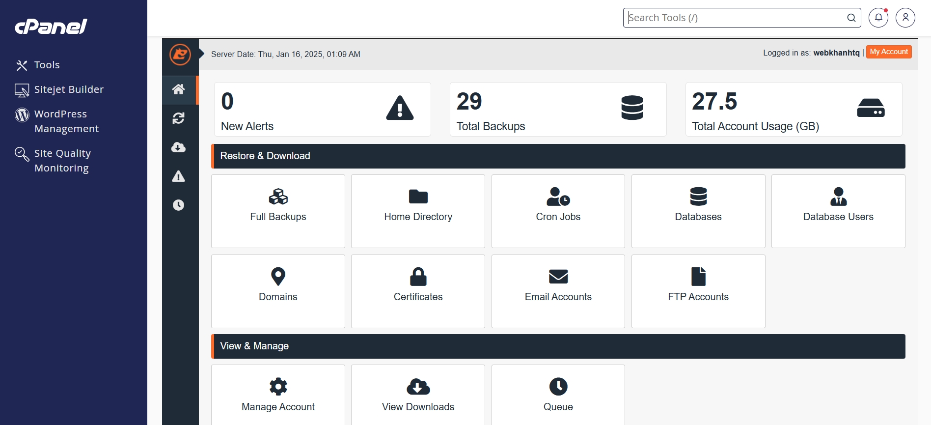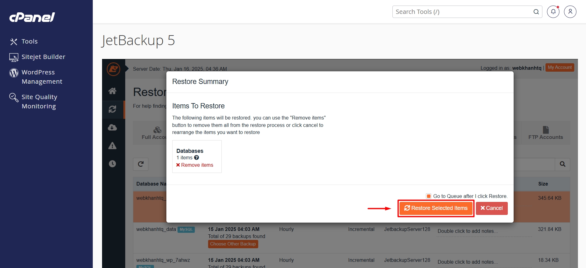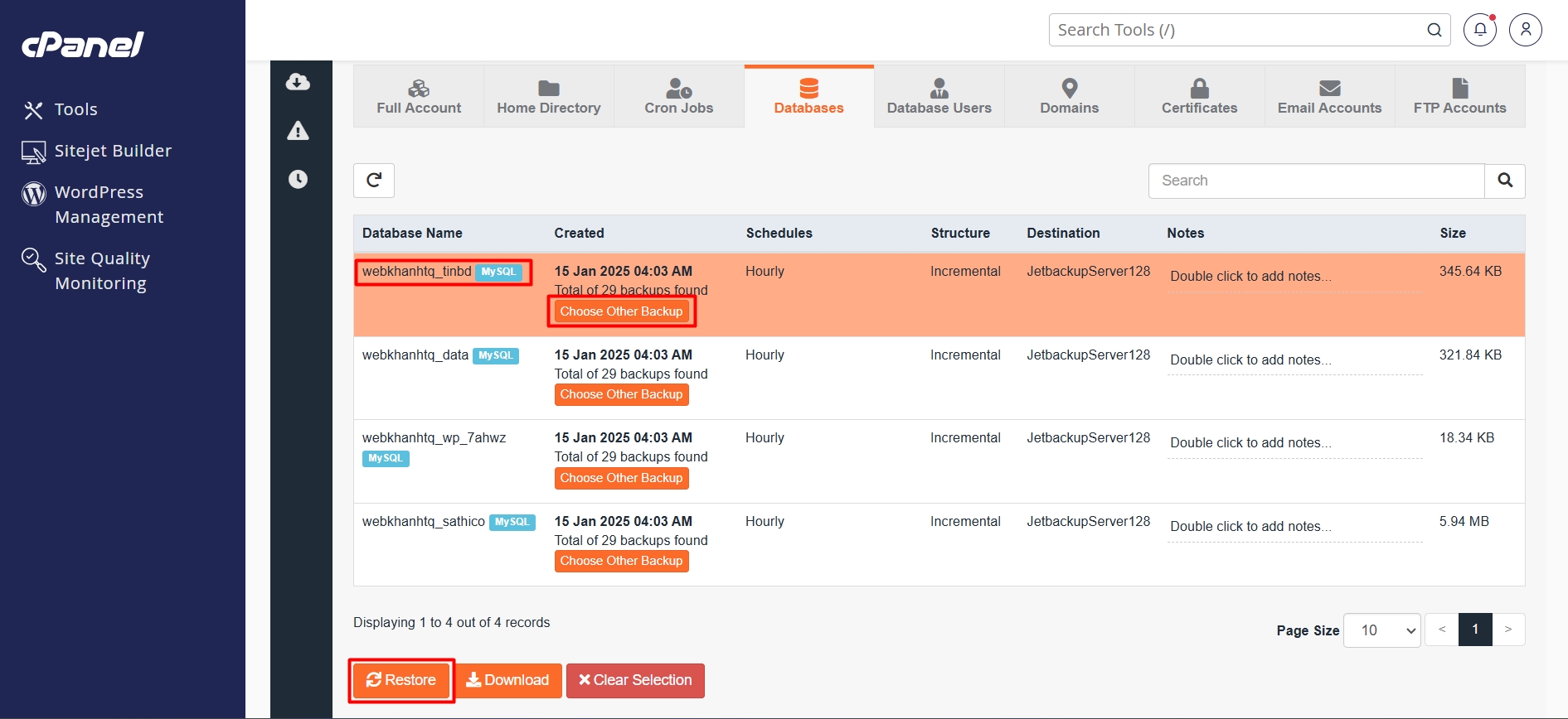 Bài viết này hướng dẫn các bạn sử dụng JetBackup để khôi phục tài khoản cPanel, mã nguồn, cơ sở dữ liệu trên dịch vụ Shared Hosting (cPanel, Linux). Nếu bạn cần hỗ trợ, xin vui lòng: