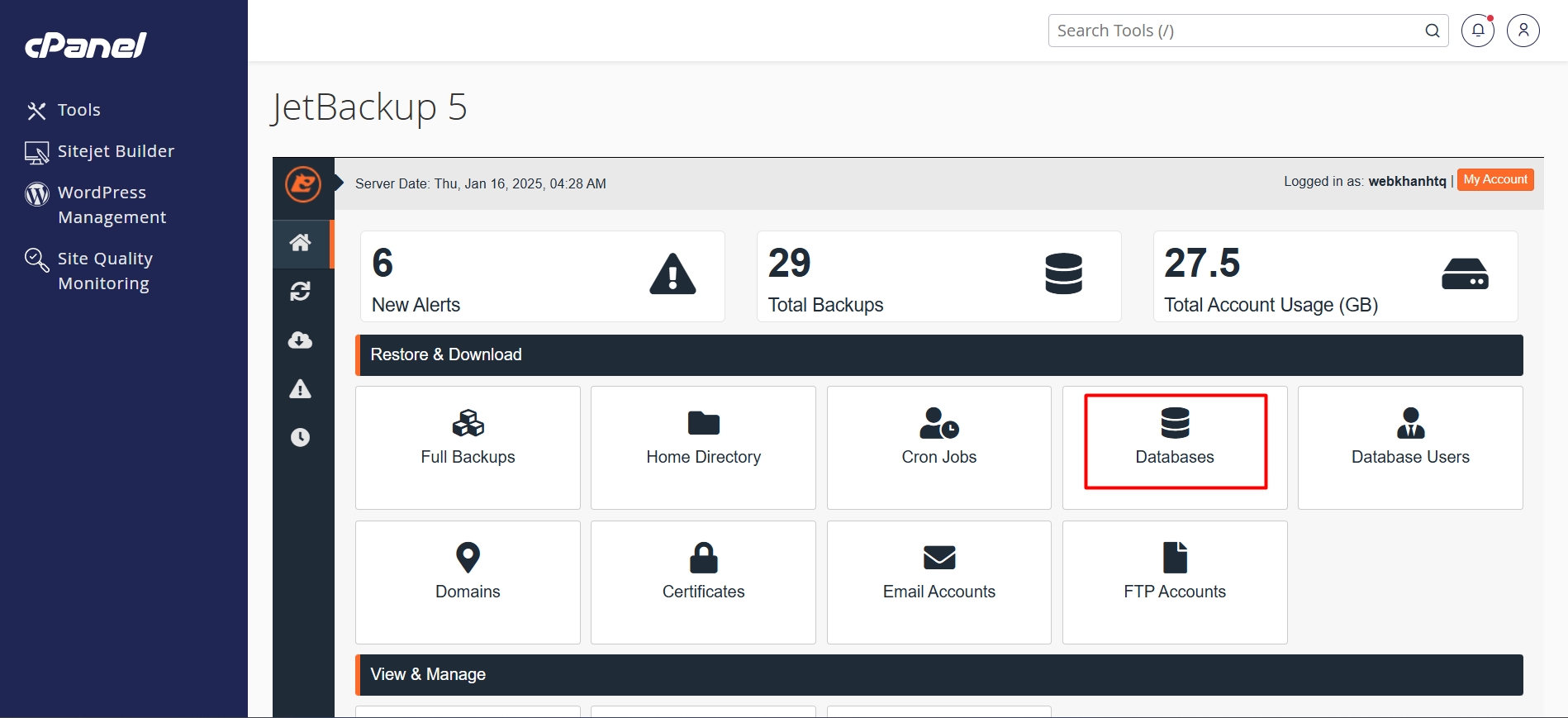 Hướng Dẫn Sử Dụng JetBackup Trên Hosting Cpanel