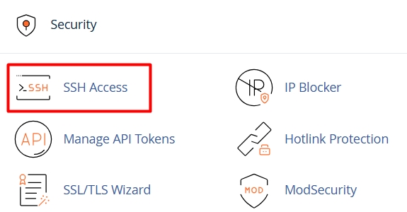 Đăng nhập cPanel, tìm kiếm và chọn SSH Access.