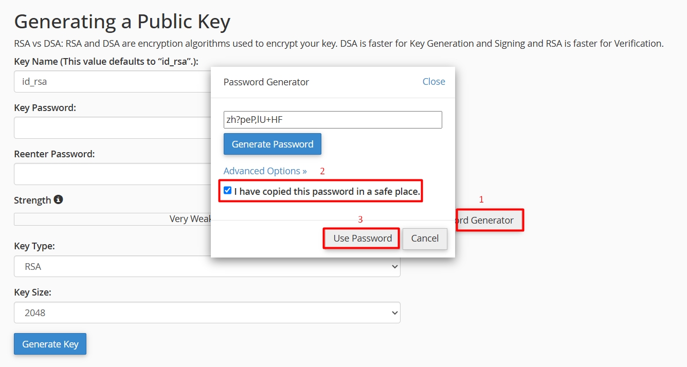Sao chép và lưu mật khẩu tại nơi an toàn vì sẽ không thể được đặt lại sau khi tạo SSH key.