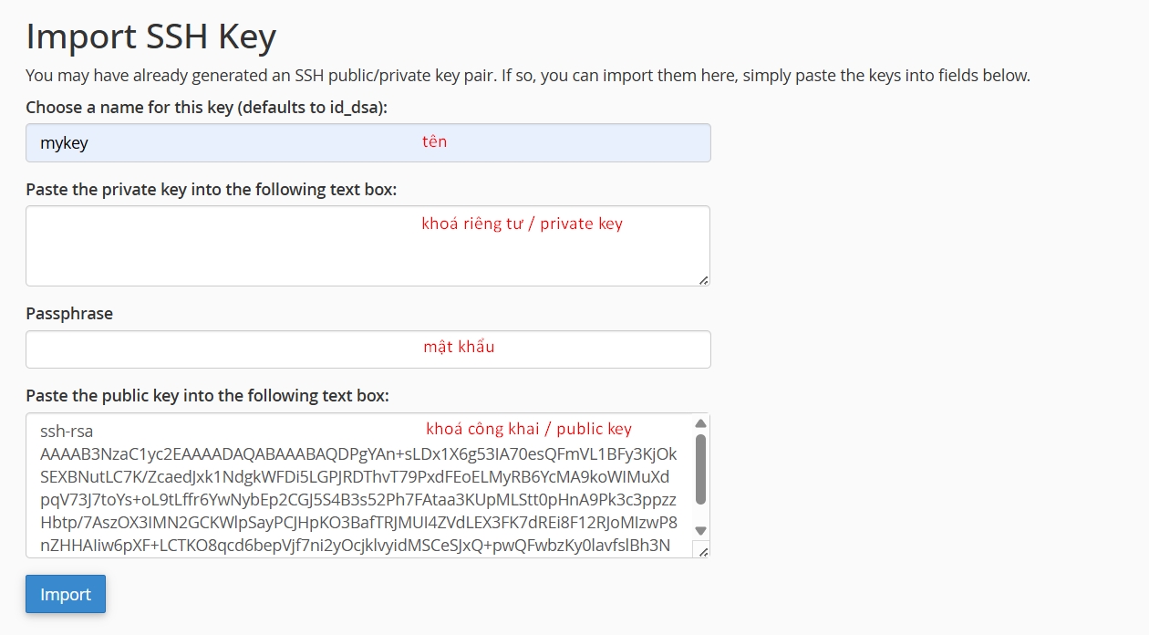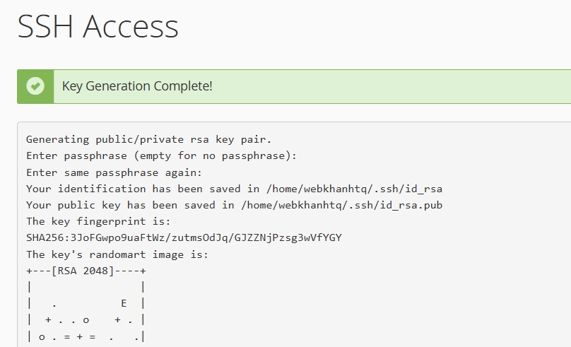 Thông báo sau khi tạo thành công chứa một số thông tin về SSH key vừa tạo.