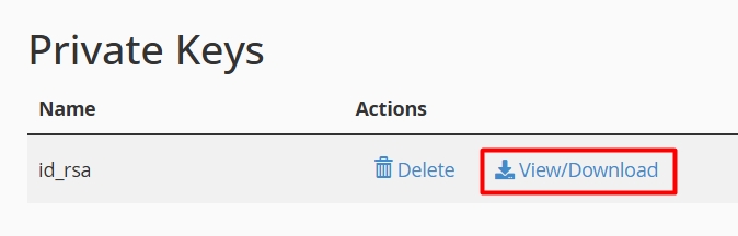Chọn Vỉew/Download để tải xuống private key đã tạo.
