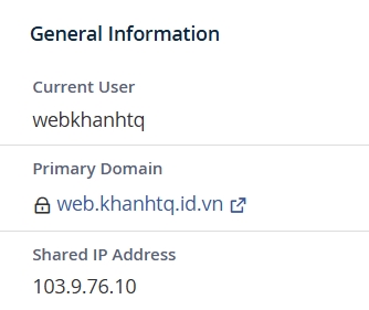 Thông tin để đăng nhập SSH được hiển thị ngay tại giao diện chính của cPanel. Trong đó, SSH username là username của tài khoản cPanel, SSH hostname là địa chỉ IP của hosting như ảnh bên dưới.