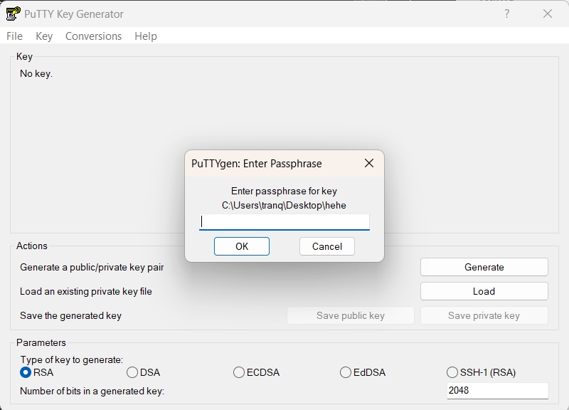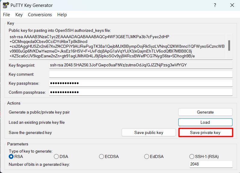 Chọn Save private key và lưu private key với phần mở rộng .ppk.