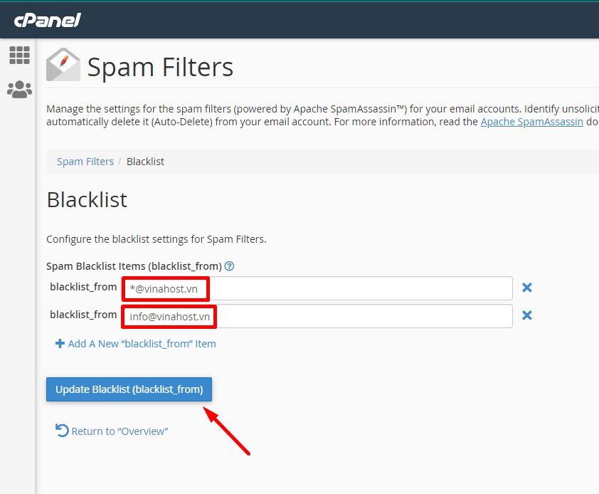 - Cú pháp *@vinahost.vn sẽ chặn tất cả các địa chỉ email từ tên miền vinahost.vn