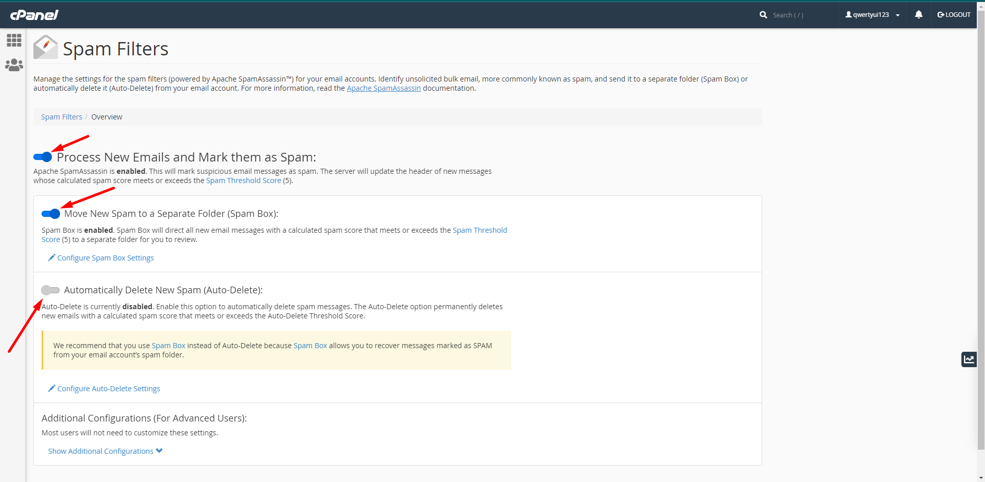 Bước 2: Kích hoạt và cấu hình Spam Filters trên Email Hosting#