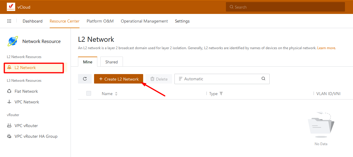 Vào tab L2 Network và chọn Create L2 Network