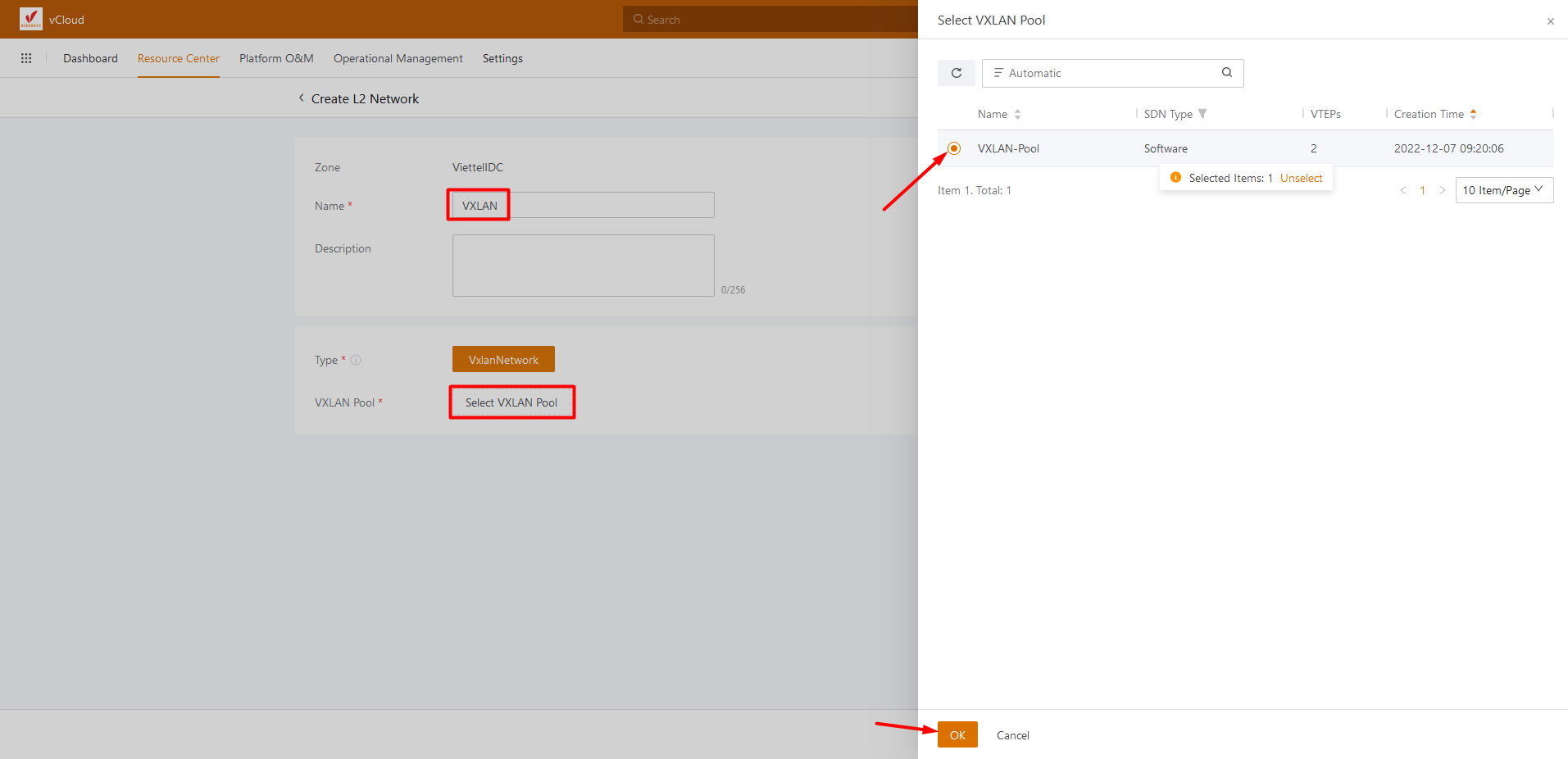 Đặt tên VXLAN và Select VXLAN Pool > OK