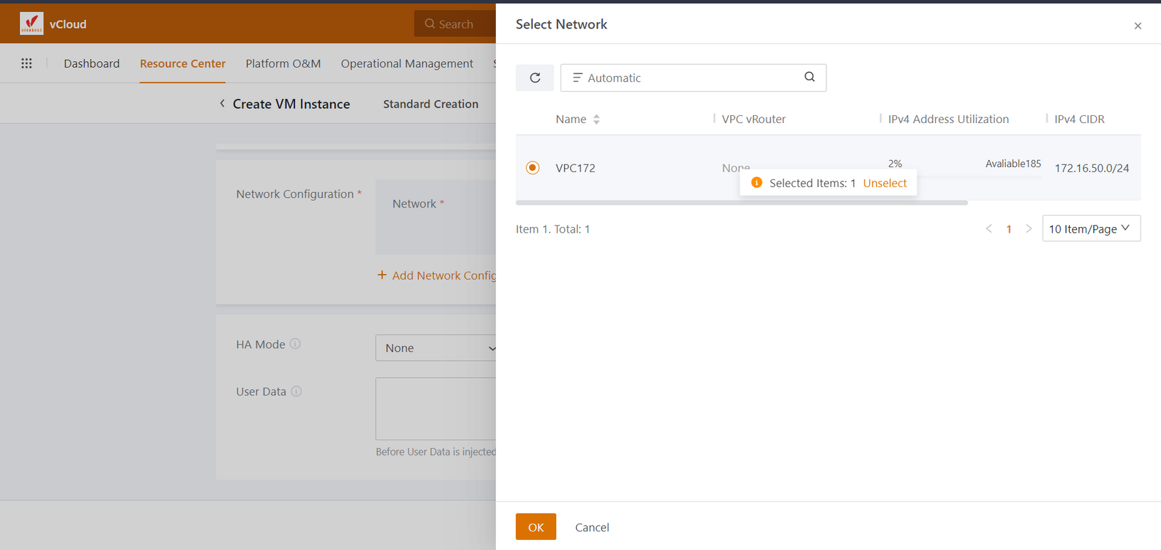 Ở đây mình chọn VPC Network và sử dụng VPC172