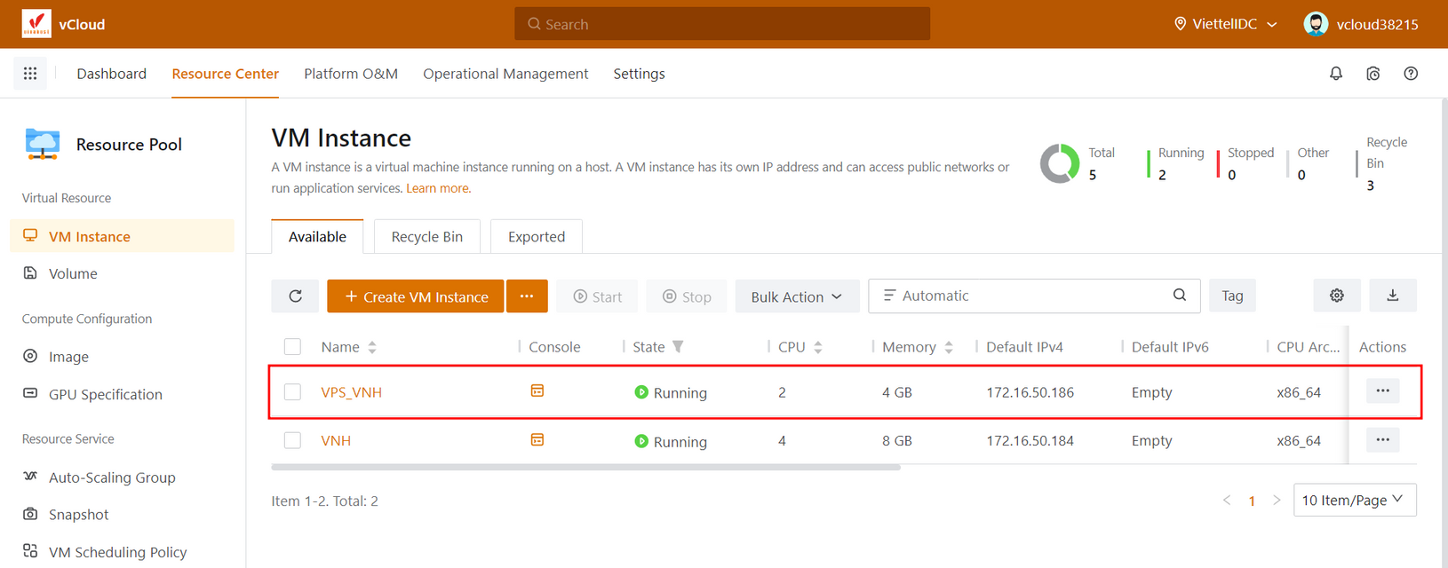 Bài viết này sẽ hướng dẫn bạn Tạo VM Instance Bằng Tính Năng Fast Creation. Nếu bạn cần hỗ trợ, xin vui lòng liên hệ VinaHost qua Hotline 1900 6046 ext. 3, email về support@vinahost.vn hoặc chat với VinaHost qua livechat https://livechat.vinahost.vn/chat.php.