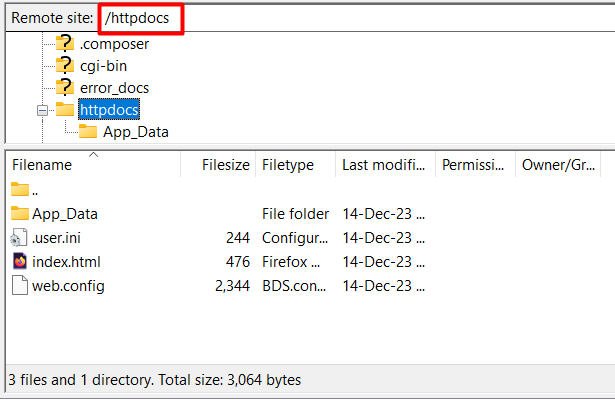 Chú ý, đường dẫn sẽ có dạng: /httpdocs