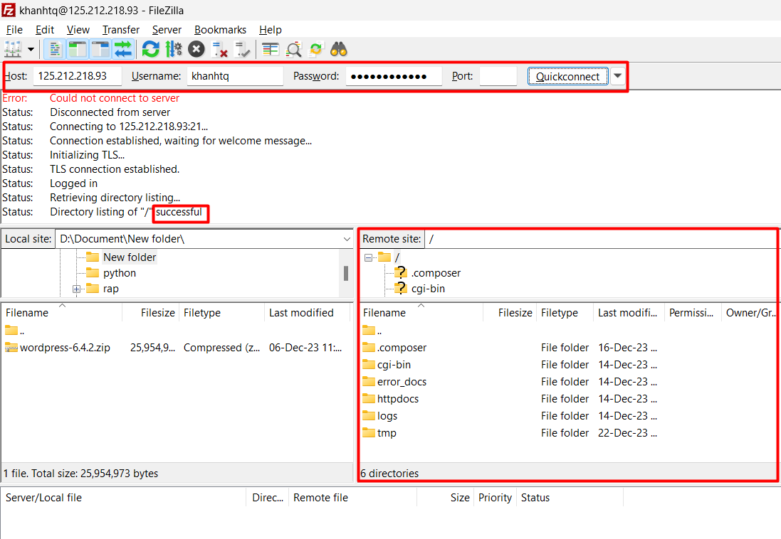 Sau đây là hướng dẫn sử dụng phần mềm FileZilla để upload source code. Các bước thực hiện tương tự đối với phần mềm WinSCP.